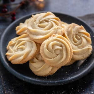 Buttery melt-in-mouth Eggless Danish Butter Cookies! These cookies require only 5 ingredients are one of my favorite treats to bake for the holidays.