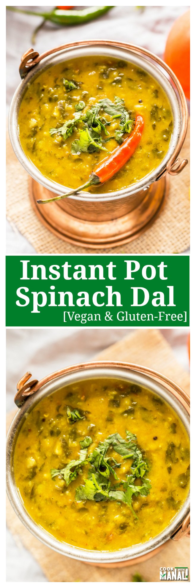 Instant Pot Spinach Dal – comforting spinach dal made in the instant pot. Enjoy it with boiled rice! Vegan & gluten-free.