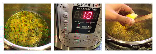 - Add water, mix and close the lid of the Instant Pot.