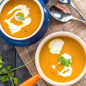 With temperature dipping down, soup must very well be on your Thanksgiving menu and if not, I insist you make this Vegan Butternut Squash Soup. It’s delicious, vegan and the best part? You can make it well in advance and freeze it in freezer bags.